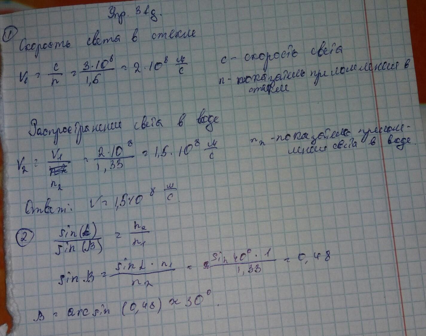 2) На границу сред вода - стекло падает луч света под углом 40 градусов. Определите угол преломления луча.