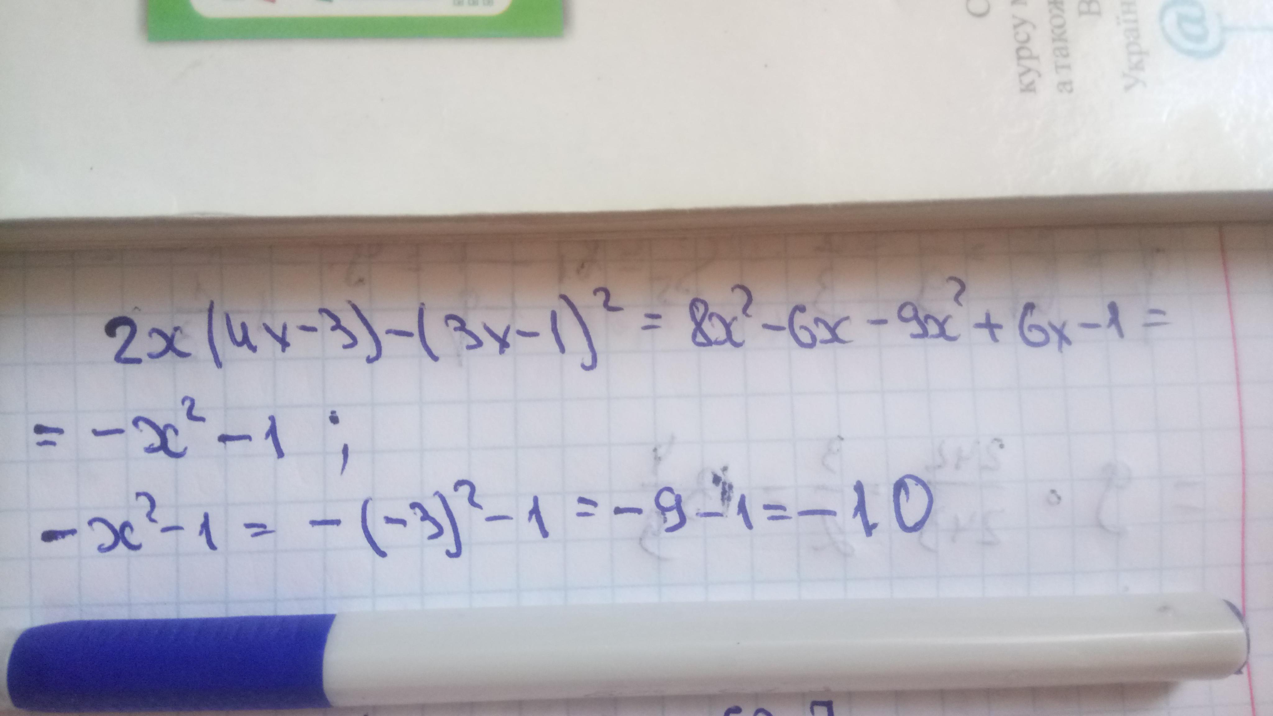 Ответ:2х(4х-3)-(3х-1)² при х=-3