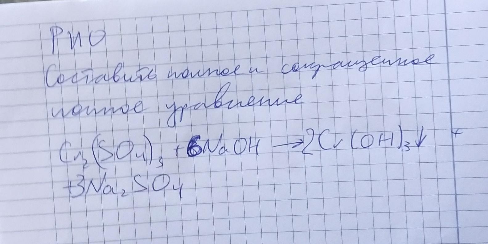 полное ионное уравнение: 2Cr(3+) +3SO4(2-) +6Na(1+)+6OH(1-)=2Cr(OH)3 в осадок +6Na(1+)+3SO4(2-)