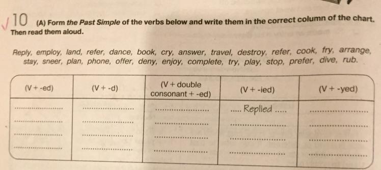 V+ied Replied, cried, fried, denied, tried