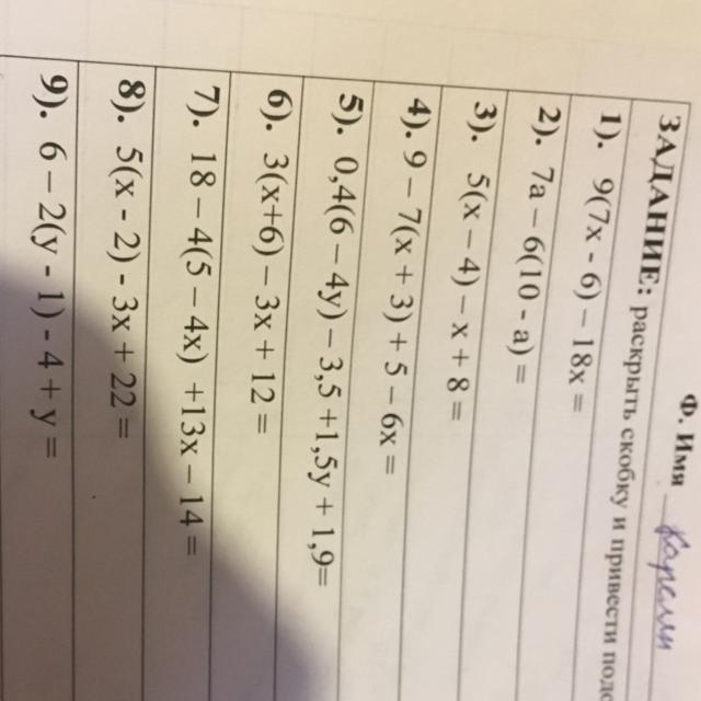1) 9(7х-6)-18х=63х-54-18х=45х-54