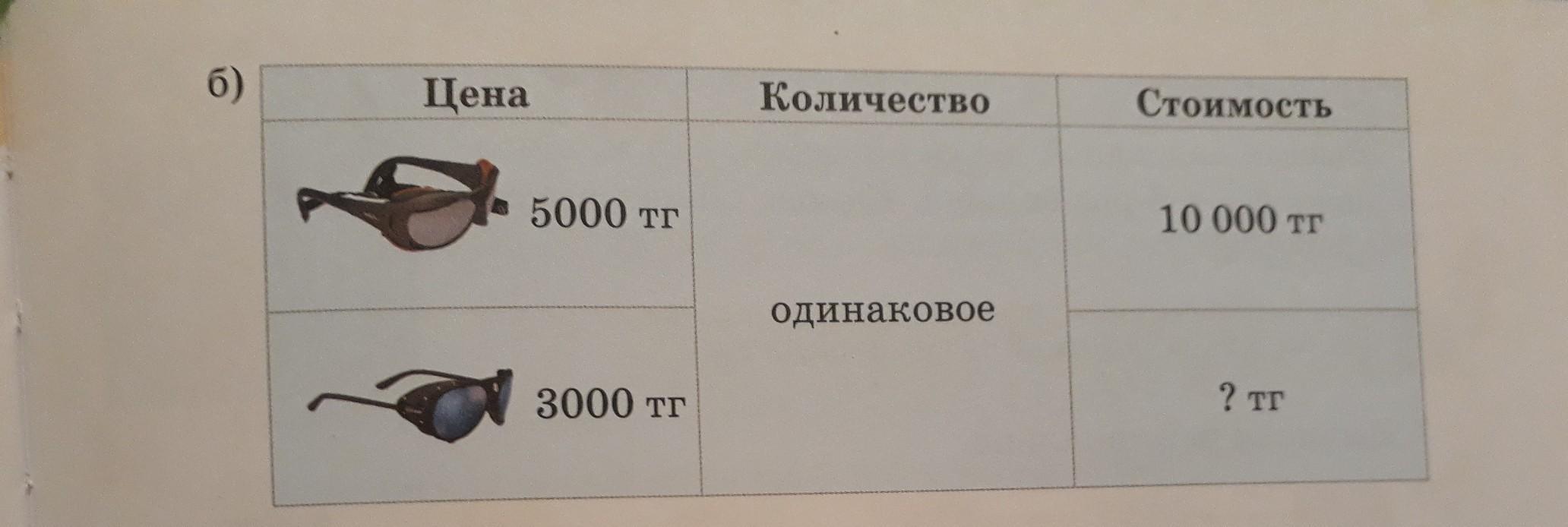 Одни очки стоят 5000 тг, вторые 3000 тг, за первые заплатили 10 000 тг. Сколько заплатили за вторые очки, если количество первых и вторых одинаковое?