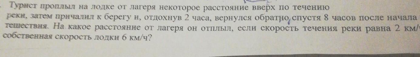 скорость лодки против течения 6-2=4 км/ч, время, затраченное на движение против течения t₂=x/4
