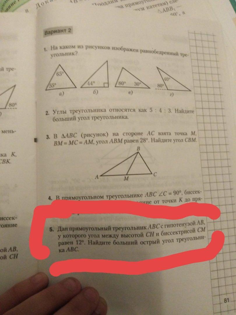 угол между медианой и высотой, проведёнными к гипотенузе, равен разности острых углов прямоугольного треугольника,