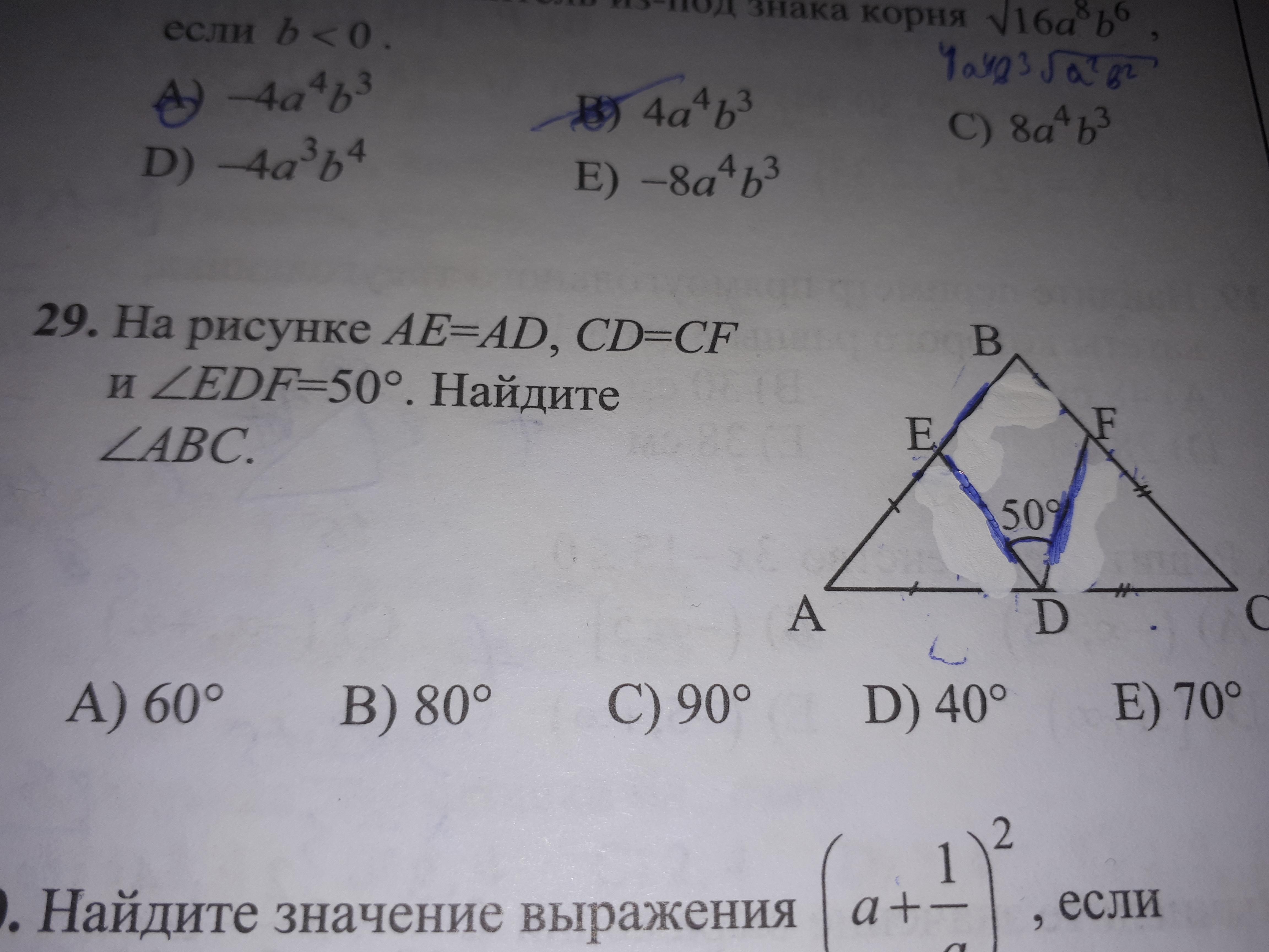 Далее по теореме о сумме углов в треугольнике нашли ∠BAC=∠BCD=50° в треугольниках AED и FCD соответственно
