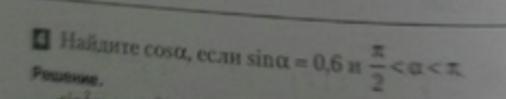 cos^2 a = 1 - sin^2 a = 1 - 0.36 = 0.64 => cos a = 0.8