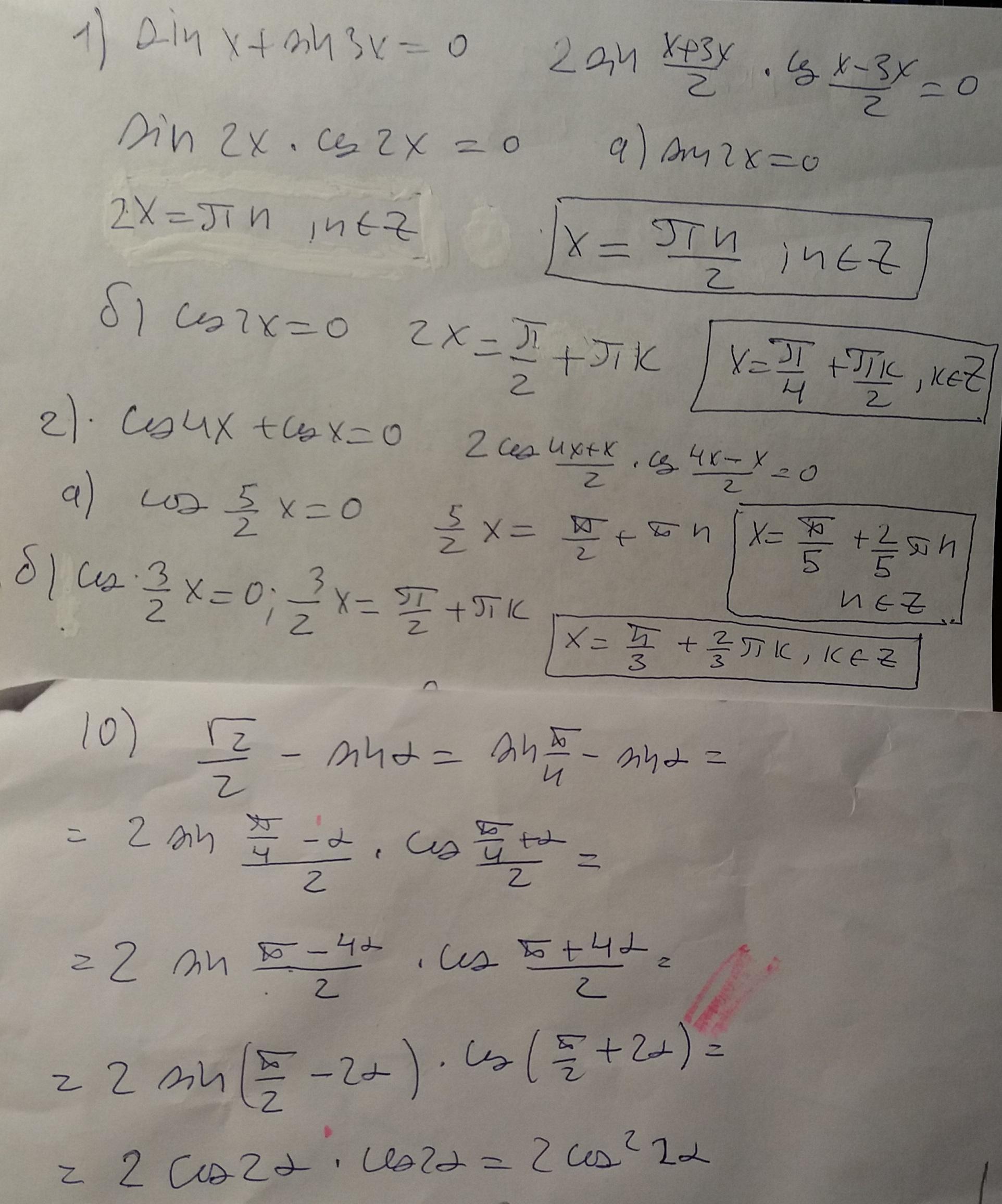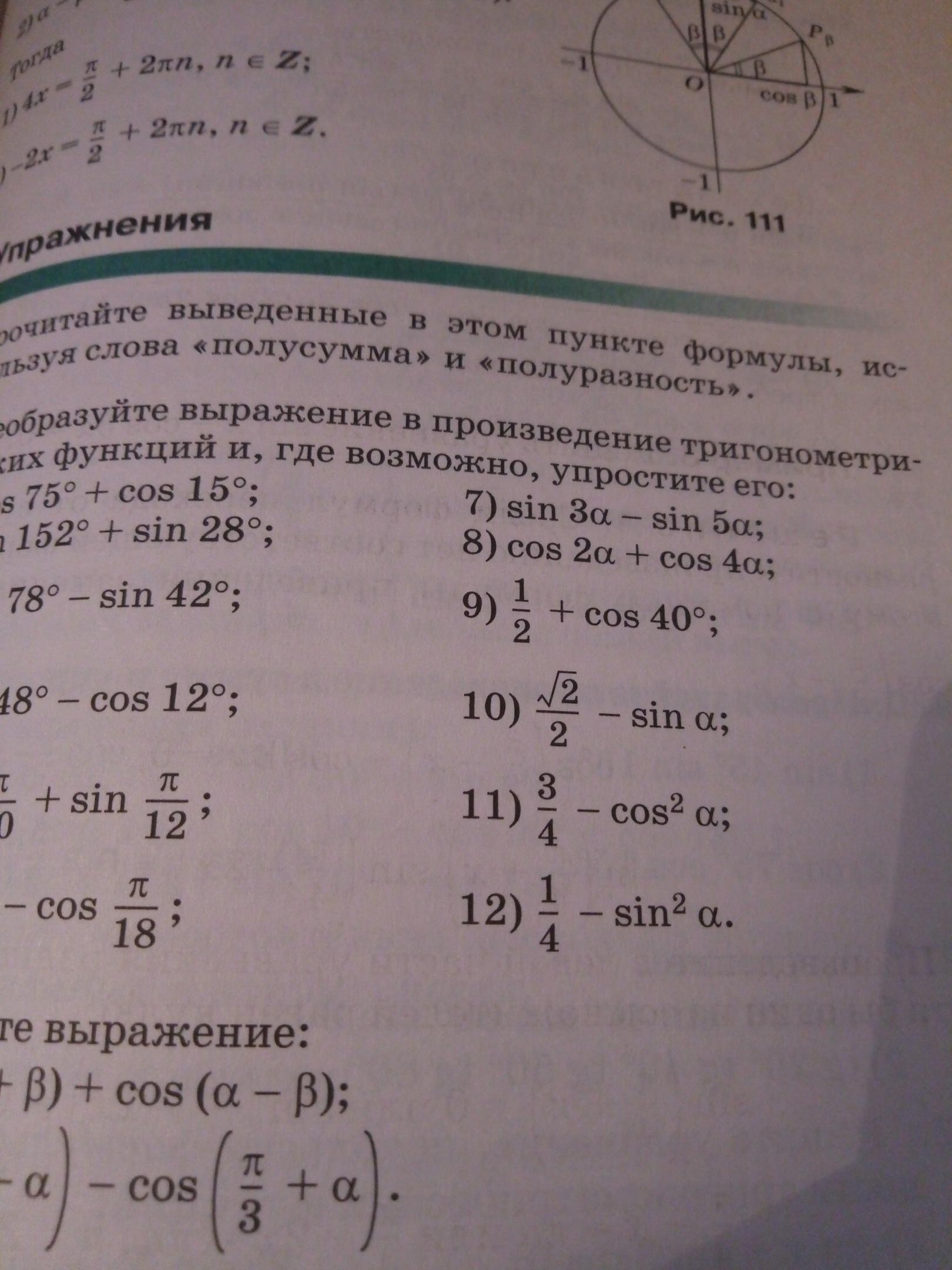 2. Преобразовать десятое выражение в произведение тригонометрических функций и по возможности упростить.