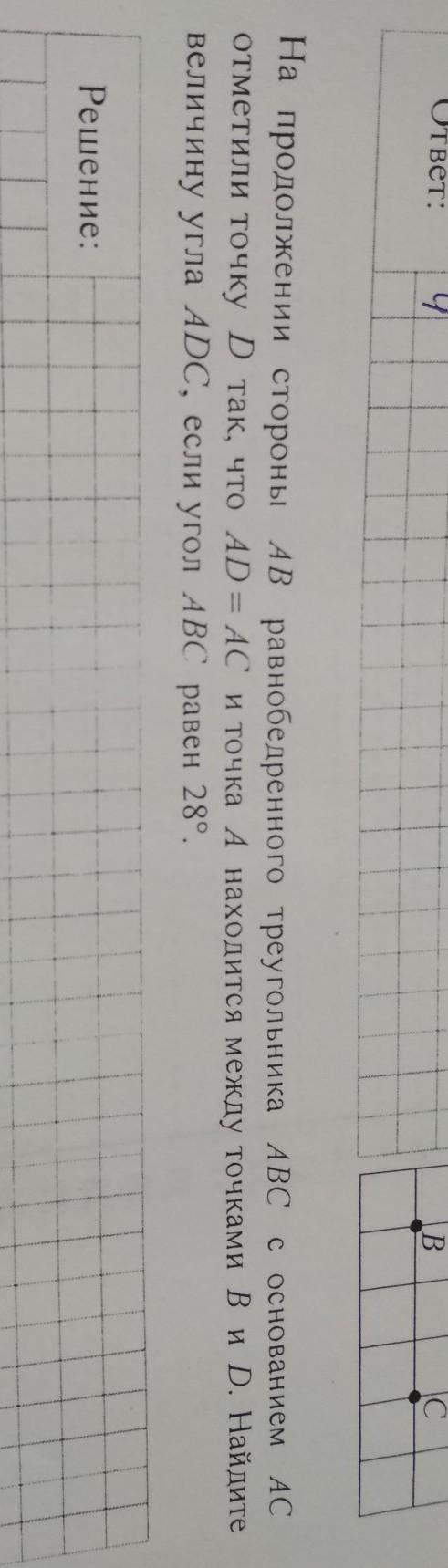 Находишь угол при основании равнобедренного Δ ADC - ∠ADC=38°