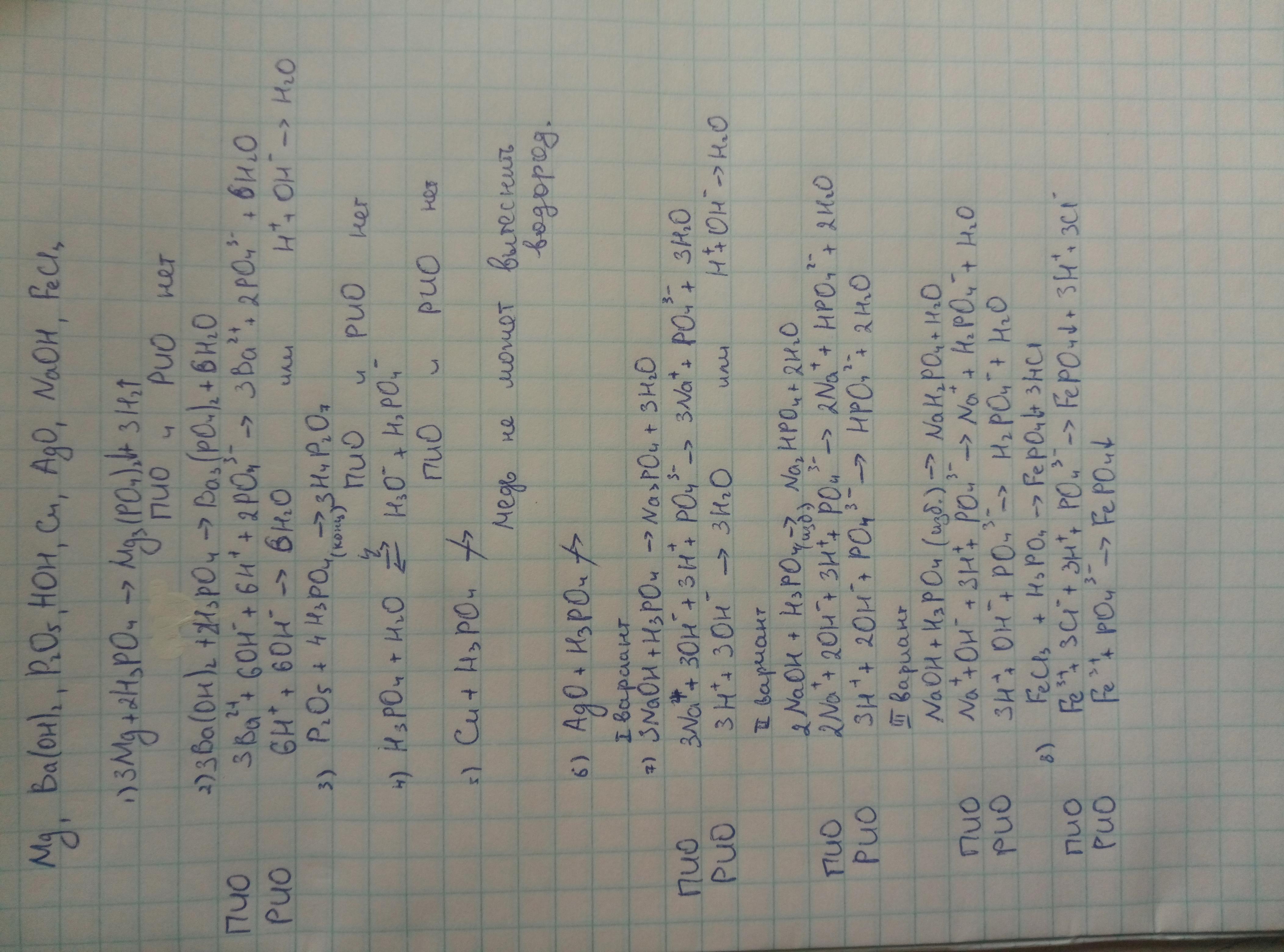 Записать все возможные реакции с фофсорной кислотой. Записать полные и сокращенные ионы уровнения