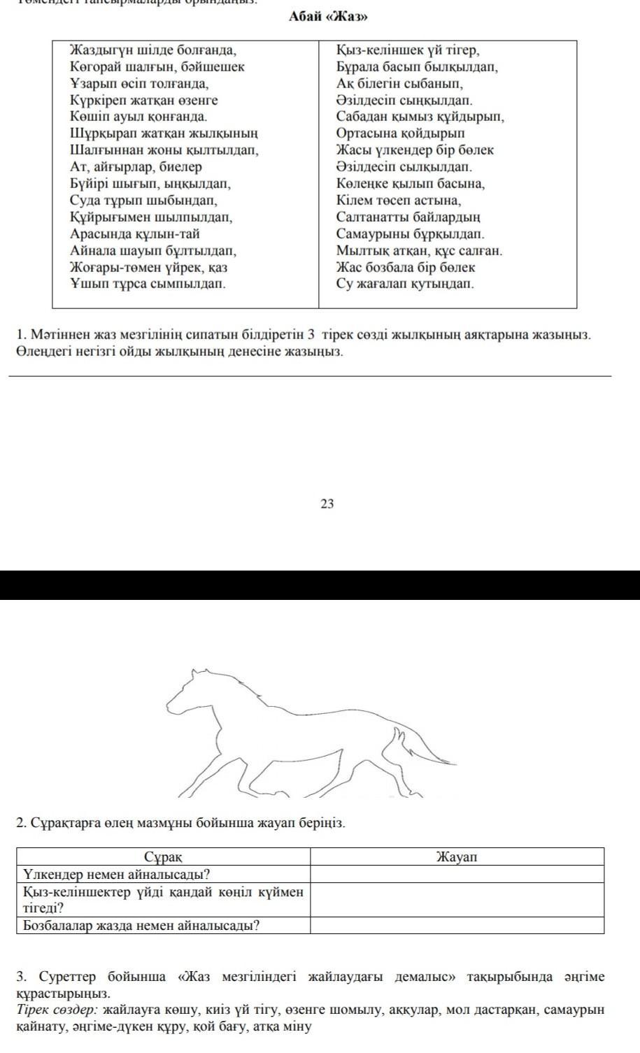 скиньте ответы пожалуйста по сору казахский язык 4 четверть 6 класс задание 1, 2 и 3 если понятно там