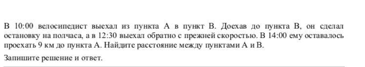 14;00 -12:30= 1ч30м (время за которое у него оставалось 9 км до пункта а)