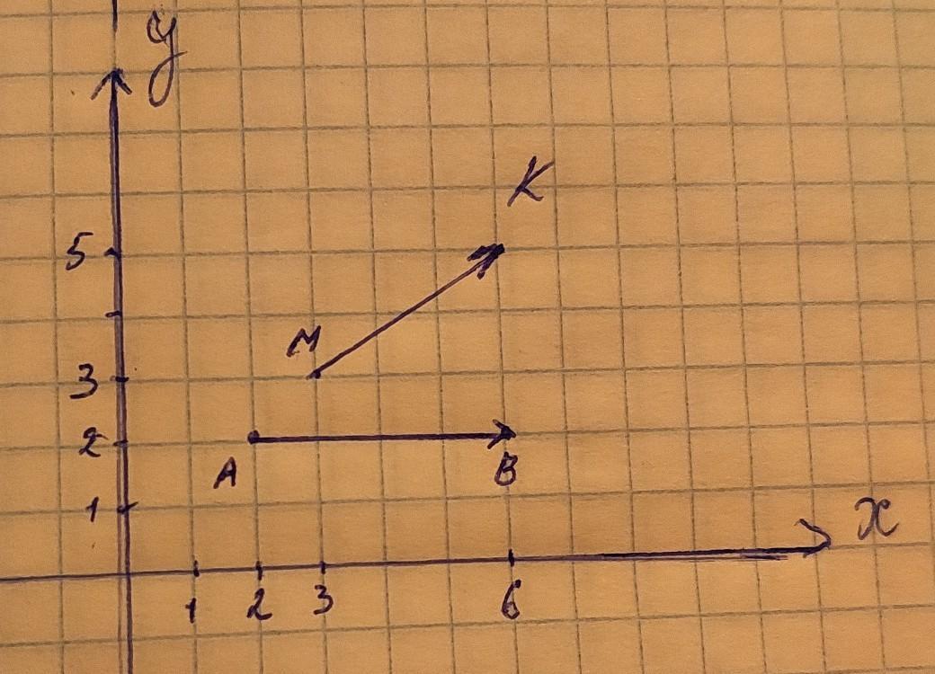 Вектор MK=(6-3;5-3)=(3;2)