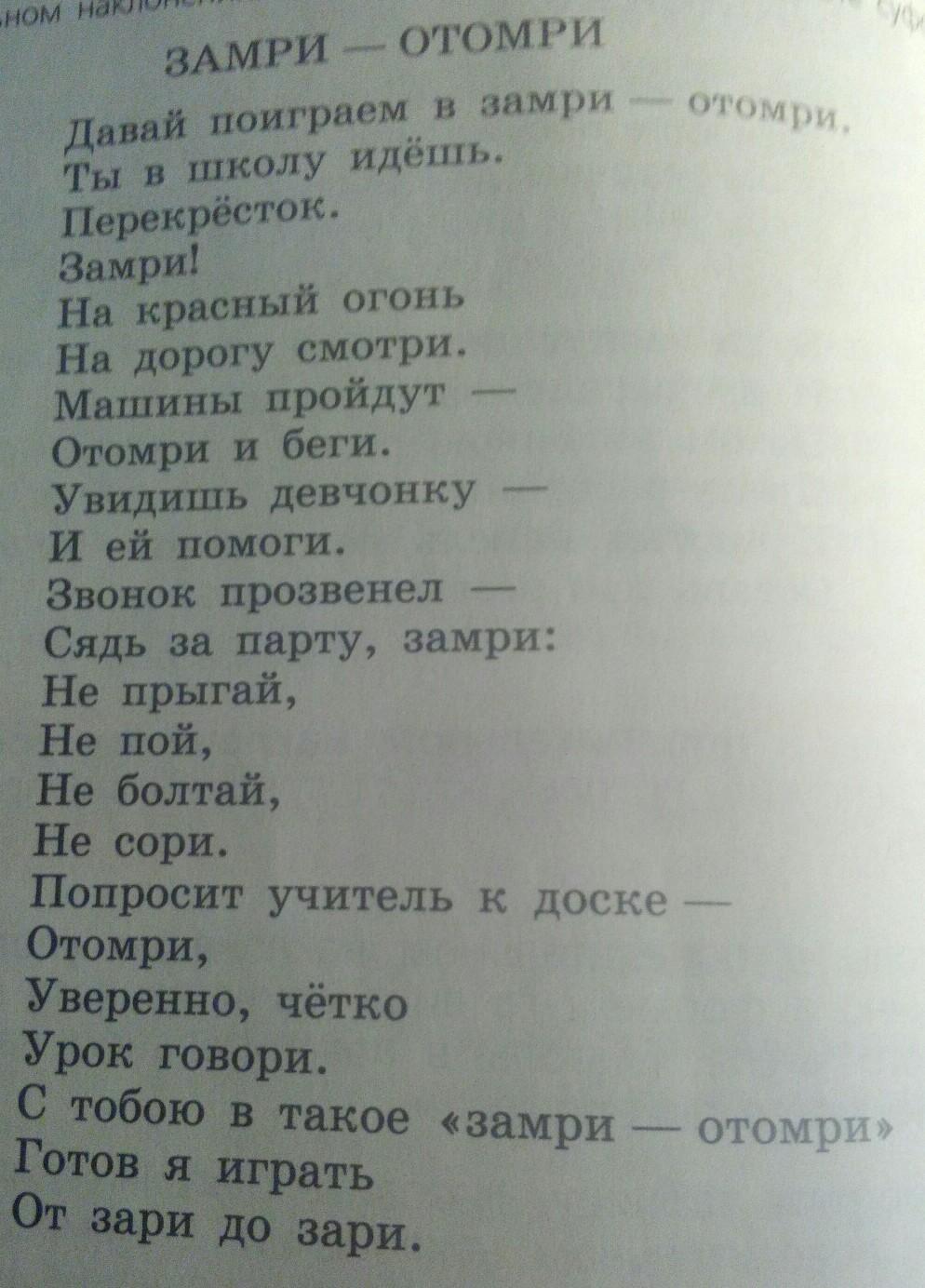 Глаголы повелительного наклонения: замри; смотри; отомри; беги; помоги; сядь; не прыгай; не пой; не болтай; не сори; говори.