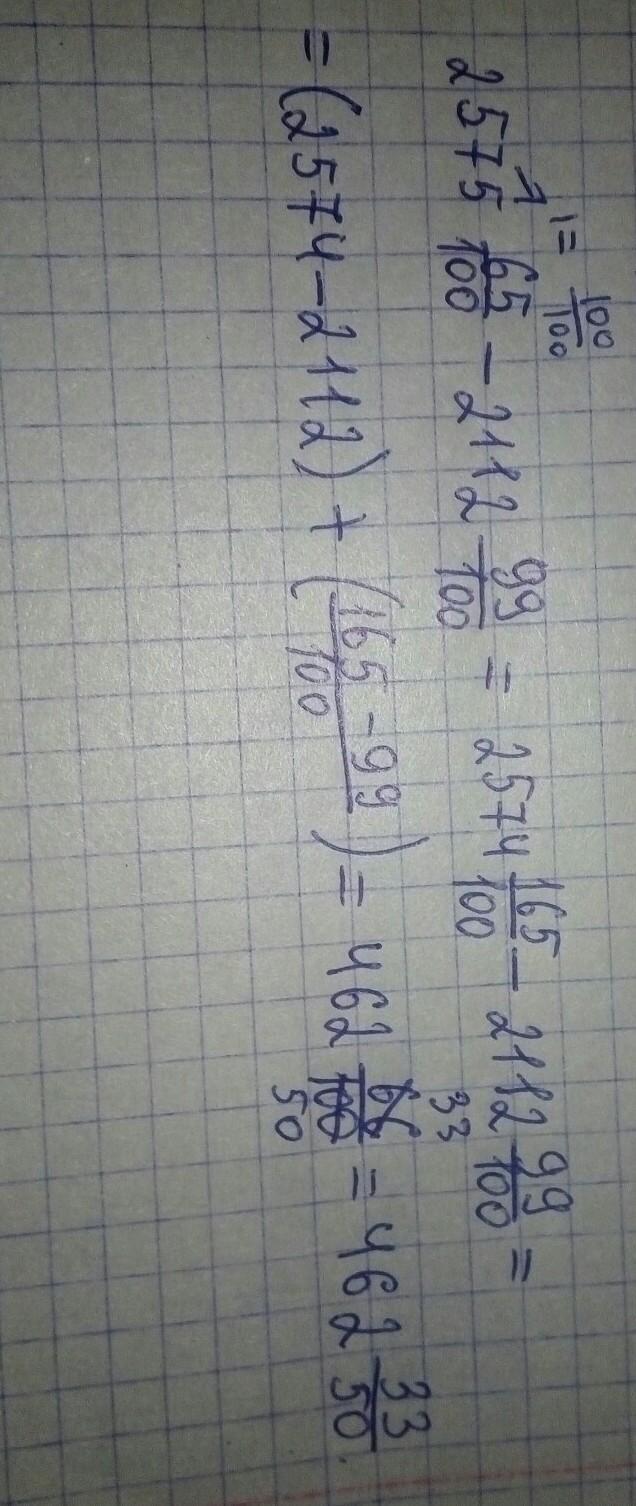 2575 65/100-2112 99/100=2575,65-2112,99=462,66