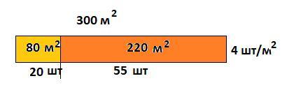 1) 55 + 20 = 75 шт - всего на всю площадь