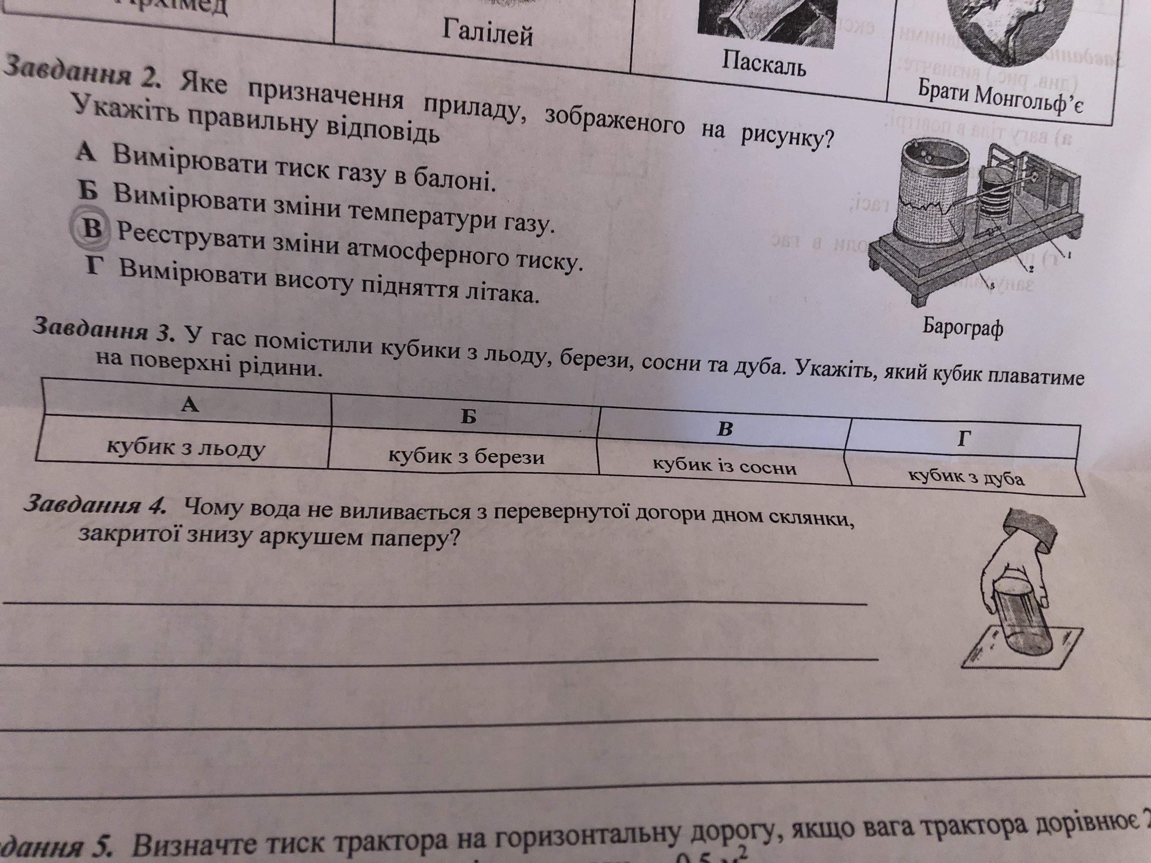 У гас помістили кубики з льоду , берези , сосни та дуба. Укажіть , який кубик плаватиме на поверхні рідини