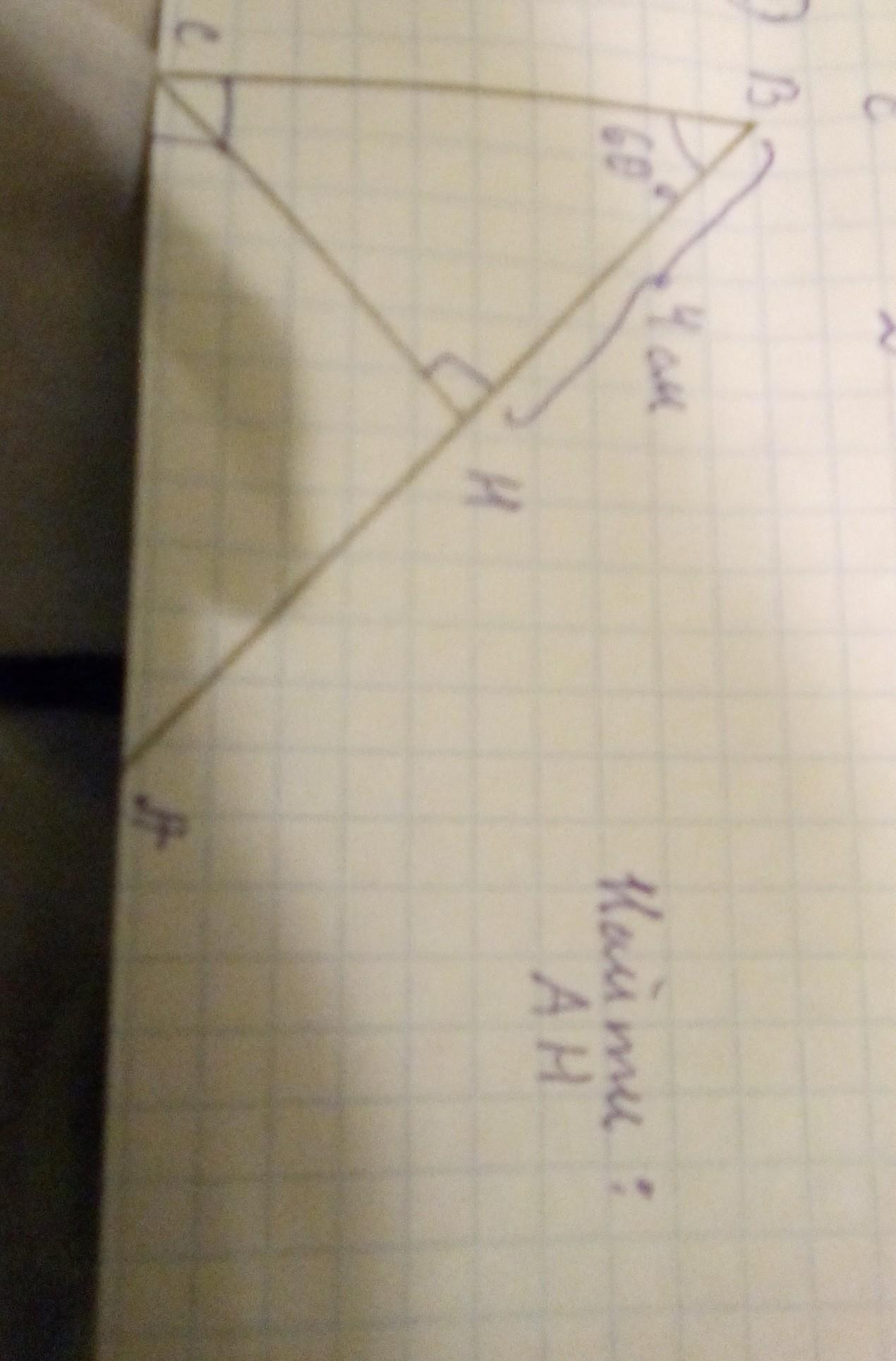 Найдем ВС - гипотенузу в поямоугольном треугольнике ВСН (∠Н=90°), т.к. катет ВН=4 см и лежит против угла в30°(90°-60°=30°) , то ВС =8 см. СН² =8²-4²=12*4=48