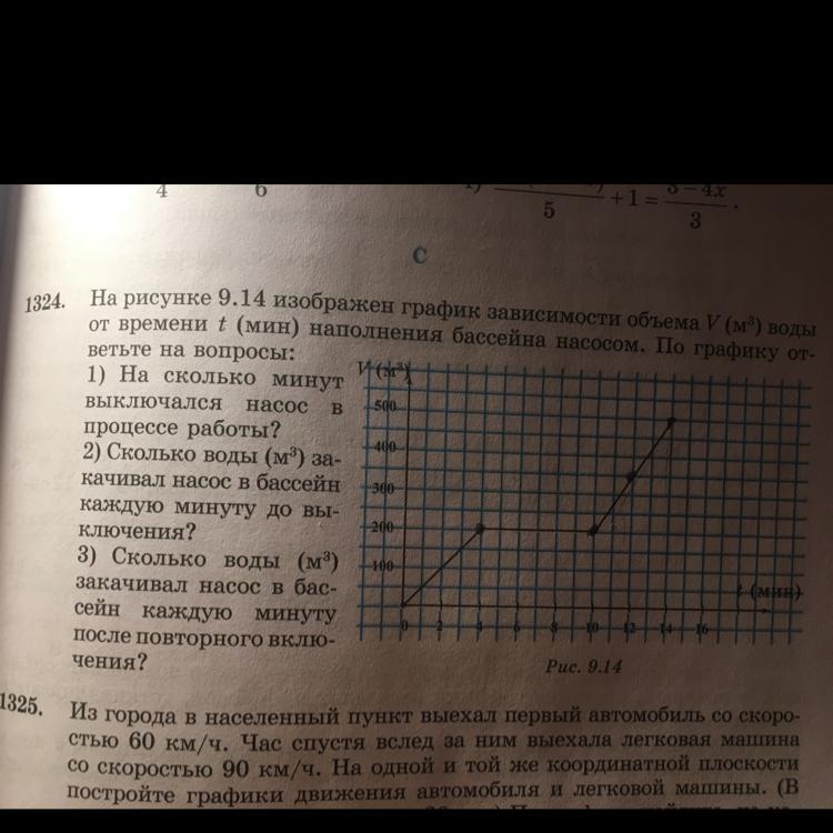 На рисунке 9.14 изображен график зависимости объем V (м3) воды от времени t (мин) наполнениям бассейна насосом.По графику ответьте на вопросы: