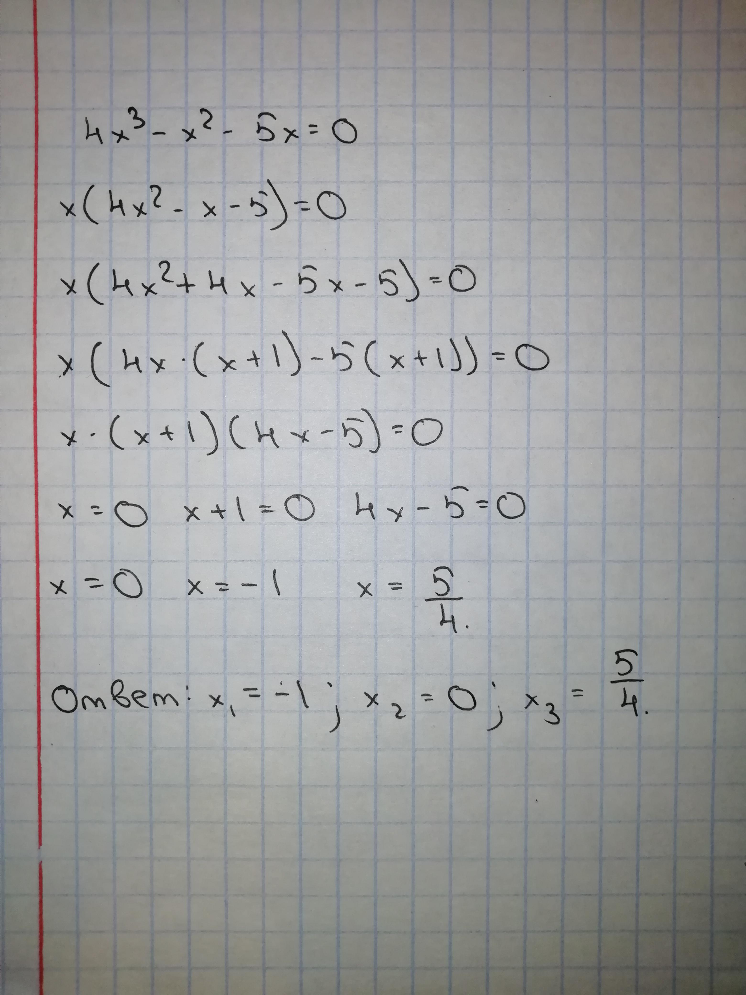 1) Решите уравнение 4x³-x²-5х = 0, разложив его левую часть на множители.