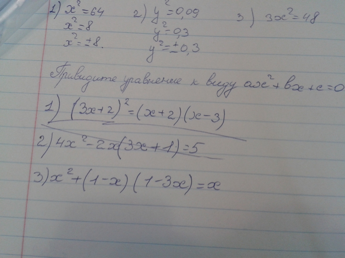 3. x2+(1-x)(1-3x)=x раскрываем скобки