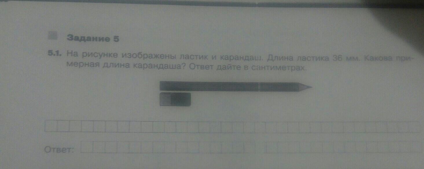 На рисунке изображены ластик и карандаш.Длина ластика 36мм. Какова примерная длина карандаша?Ответ дайте в сантиметрах! Сроочноо