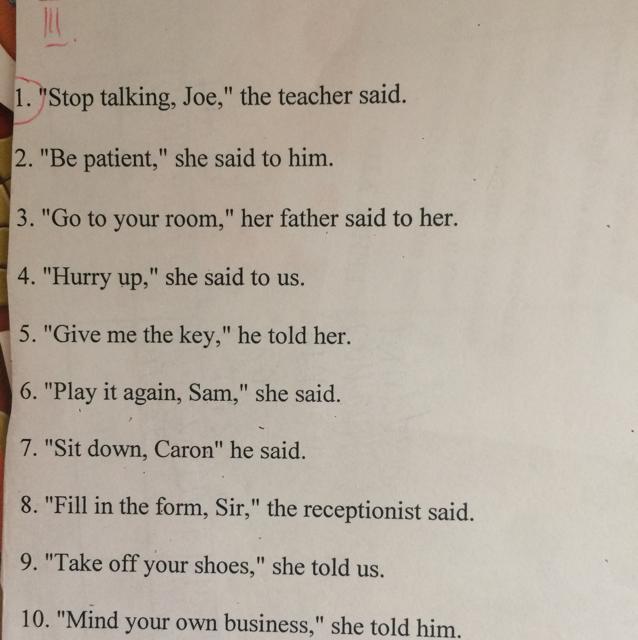 1. The teacher said to Joe to stop talking.