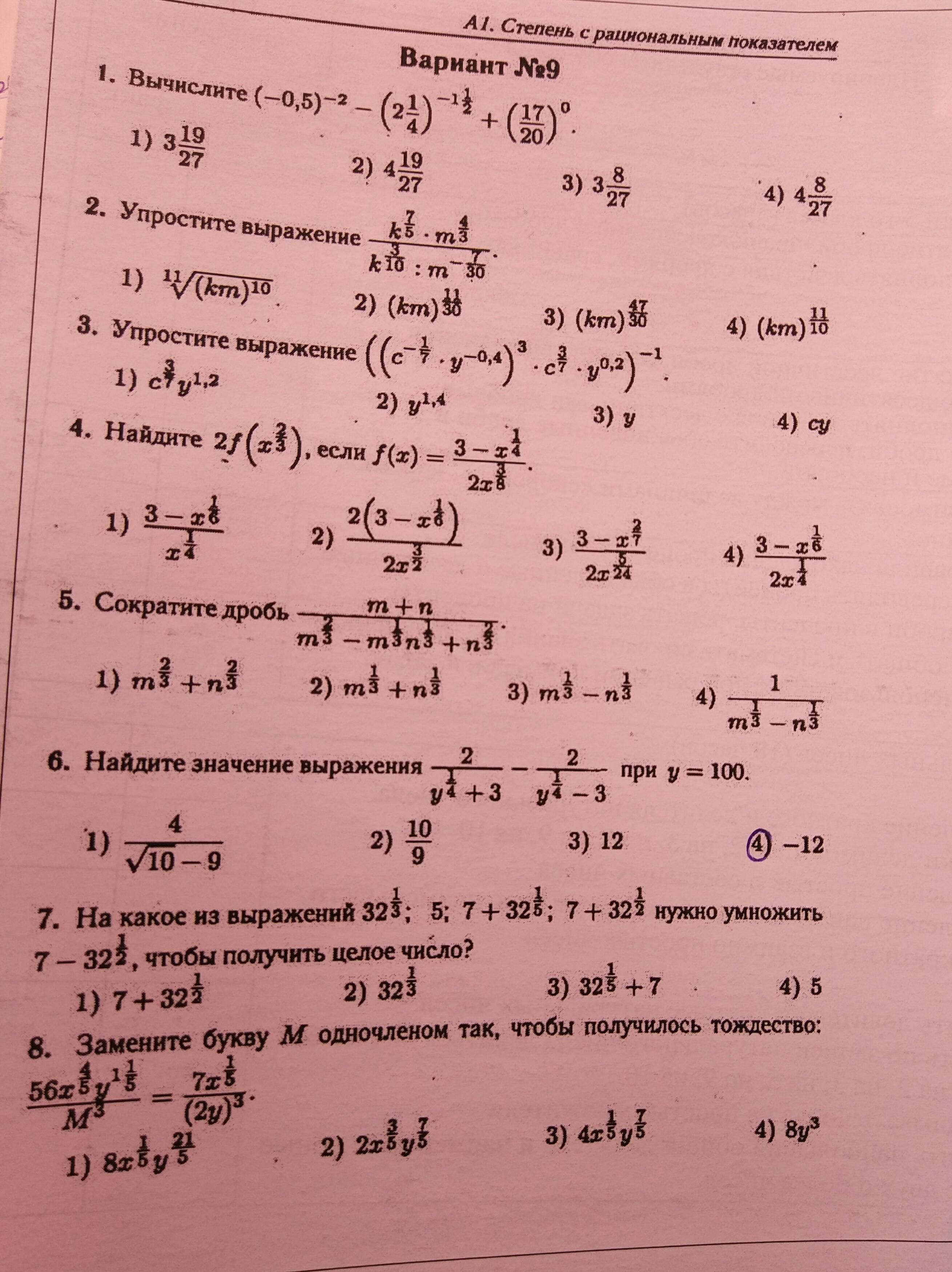= у⁻¹*⁽⁻¹⁾ = у¹ = у (ответ 3),