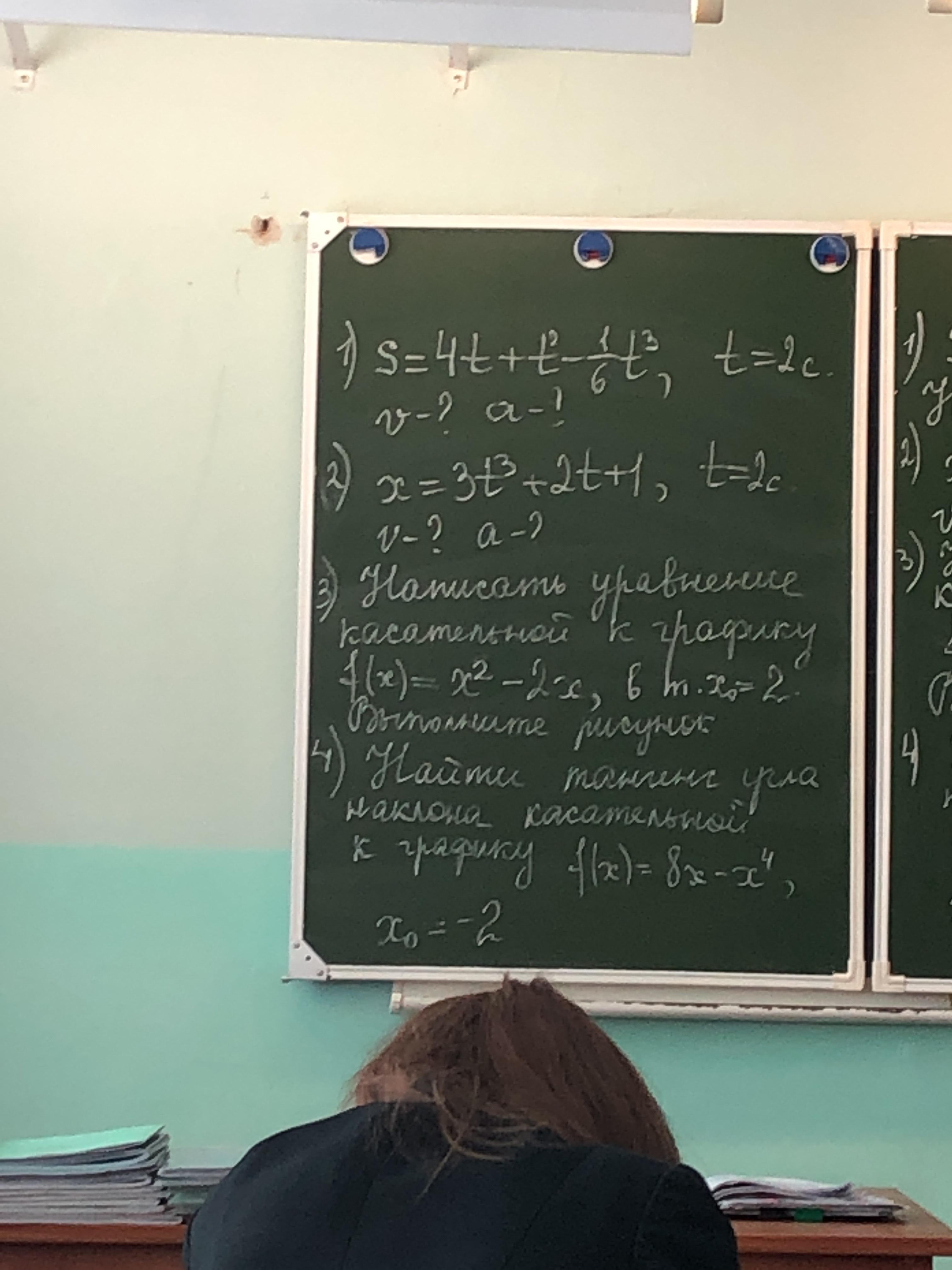 1) S=4t+t^2-frac{t^3}{6}\ v(t)=S'(t)=(4t+t^2-frac{t^3}{6})'=4+2t-frac{1}{6} *3t^2=4+2t-frac{t^2}{2}\v(2)=4+2*2-frac{2^2}{2} =4+4-2=6\\a(t)=v'(t)=(4+2t-frac{t^2}{2})'=2-frac{1}{2} *2t=2-t\a(2)=2-2=0\\2)x=3t^3+2t+1\v(t)=x'(t)=(3t^3+2t+1)'=3*3t^2+2=9t^2+2\v(2)=9*2^2+2=36+2=38\\a(t)=v'(t)=(9t^2+2)'=9*2t=18t\a(2)=18*2=36\