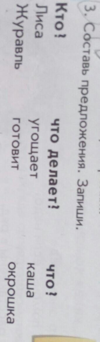 1.Лиса готовит окрушку2.журавль огощает кашей
