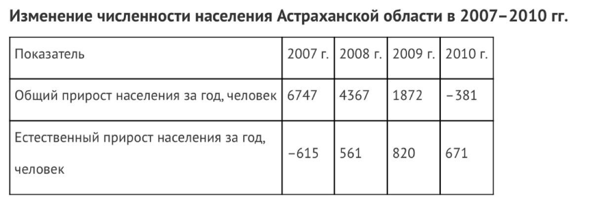 Определите миграционный прирост населения Астраханской области в 2009 г. Ответ запишите в виде числа.