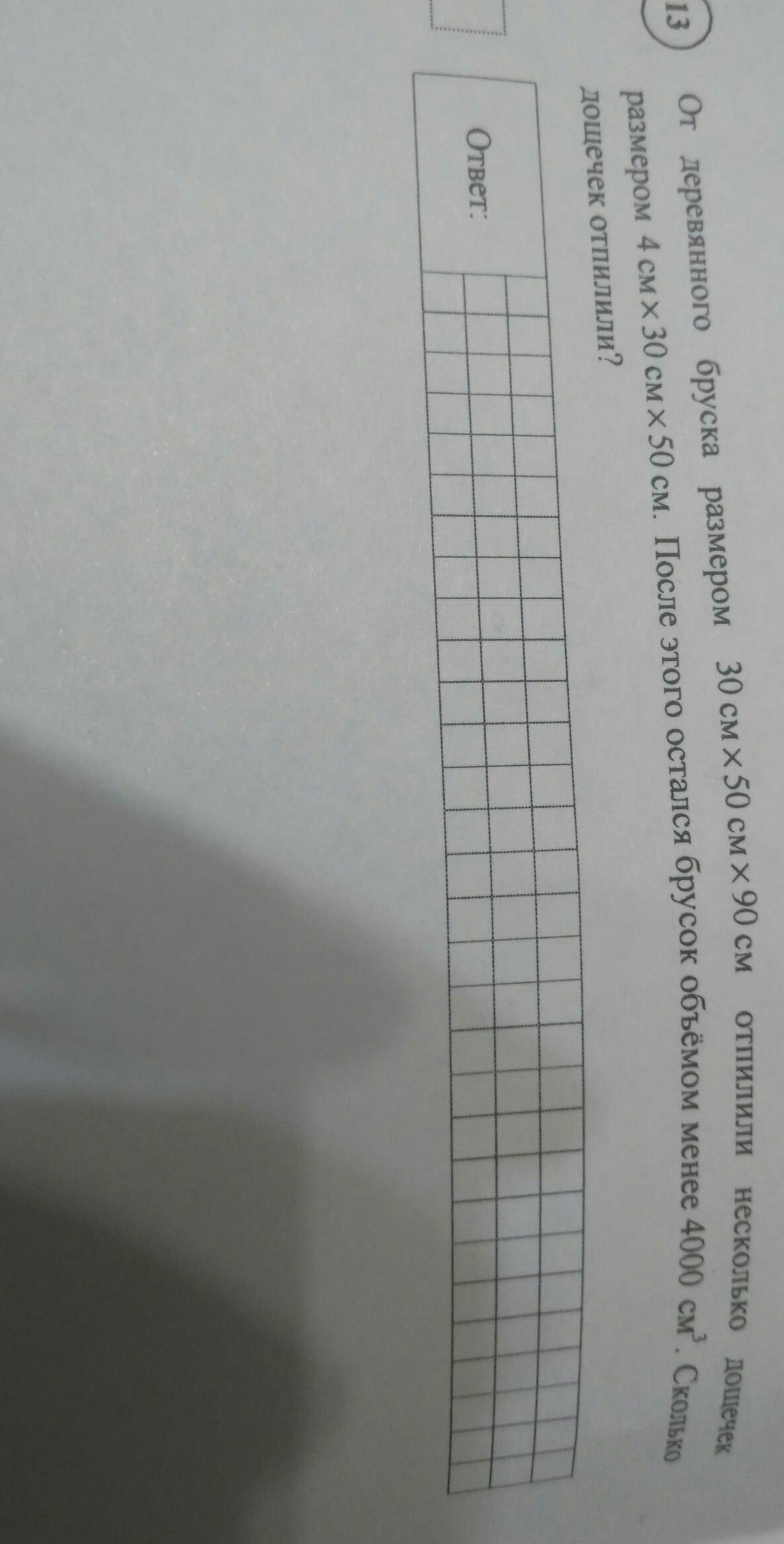 значит отпилили 22 дощечки,т.к.остаток бруска меньше 4000см3
