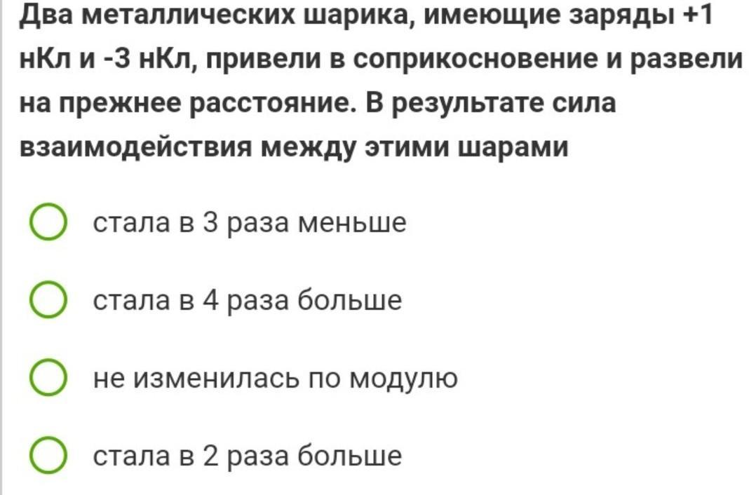 Ответ: , то есть сила взаимодействия металлических шариков после соприкосновения стала в три раза меньше.