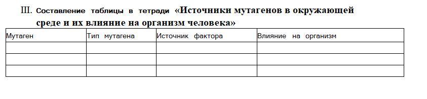 Биологические 1. специфические последовательности ДНК транспозоны,некоторые вирусы (вирус кори, краснухи, гриппа), продукты обмена веществ (продукты окисления липидов) 2 Механизмы образования мутаций при действии различных биологических факторов не вполне ясны, однако агенты, содержащие нуклеиновые кислоты, могут вызывать нарушение процессов рекомбинации, что приводит к возникновению мутаций. 3 Транспозоны один из классов мобильных элементов генома которые, встраиваясь в геном, могут вызывать мутации, в том числе и такие значительные как хромосомные перестройки.Они играют важную роль в процессах переноса лекарственной устойчивости среди микроорганизмов, рекомбинации, и обмена генетическим материалом между различными видами как в природетак и в ходе генно-инженерных исследований.