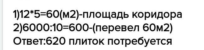 Как решить задачи в коридор длиной 12 м и шириной 5 м нужно покрыть пол квадратными плитками Сколько потребуется плиток если площадь каждой плитки 10 дм в квадрате