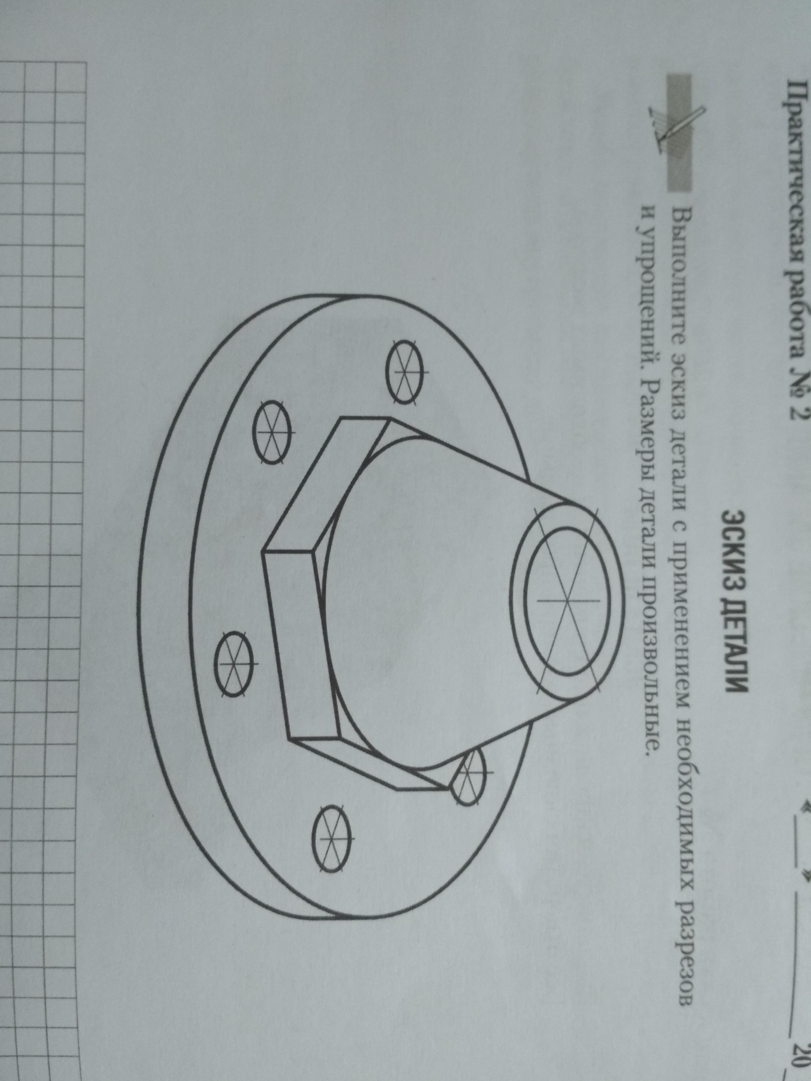 Выполните эскиз детали с применением необходимых разрезов и упрощений. Размеры детали произвольные.