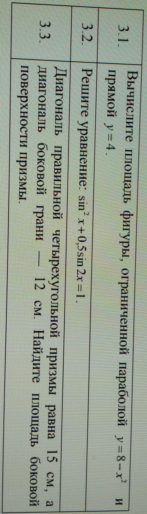 3.3. Пусть сторона основания призмы равна а, высота - Н.