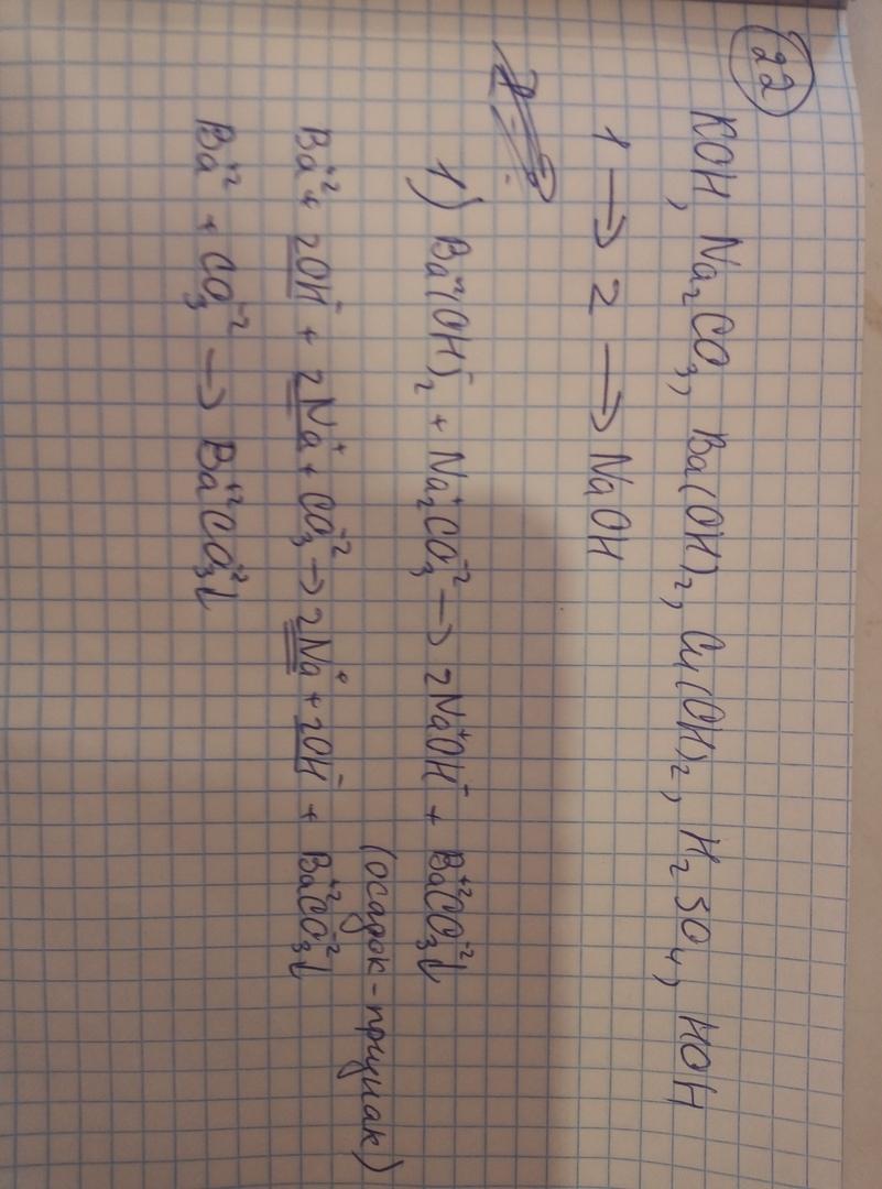 Насчет 22. В задании сказано решить в две стадии, однако это бессмысленно, так как данный карбонат натрия отлично реагирует с данным гидроксидом бария, выделяя осадок. Насколько я понимаю, это задания из ОГЭ, так что уточните у своего преподавателя, не снимут ли балл за решение в одну стадию, когда в задании сказано про две.