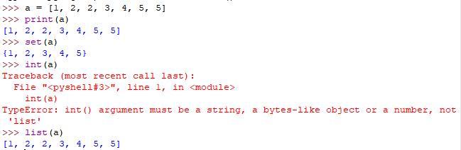 - int(a) выбросит ошибку TypeError, потому что попытается перевести список в одно число.