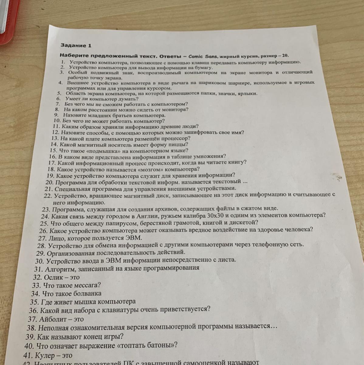 Устройство компьютера для вывода информации на бумагу.(принтер)