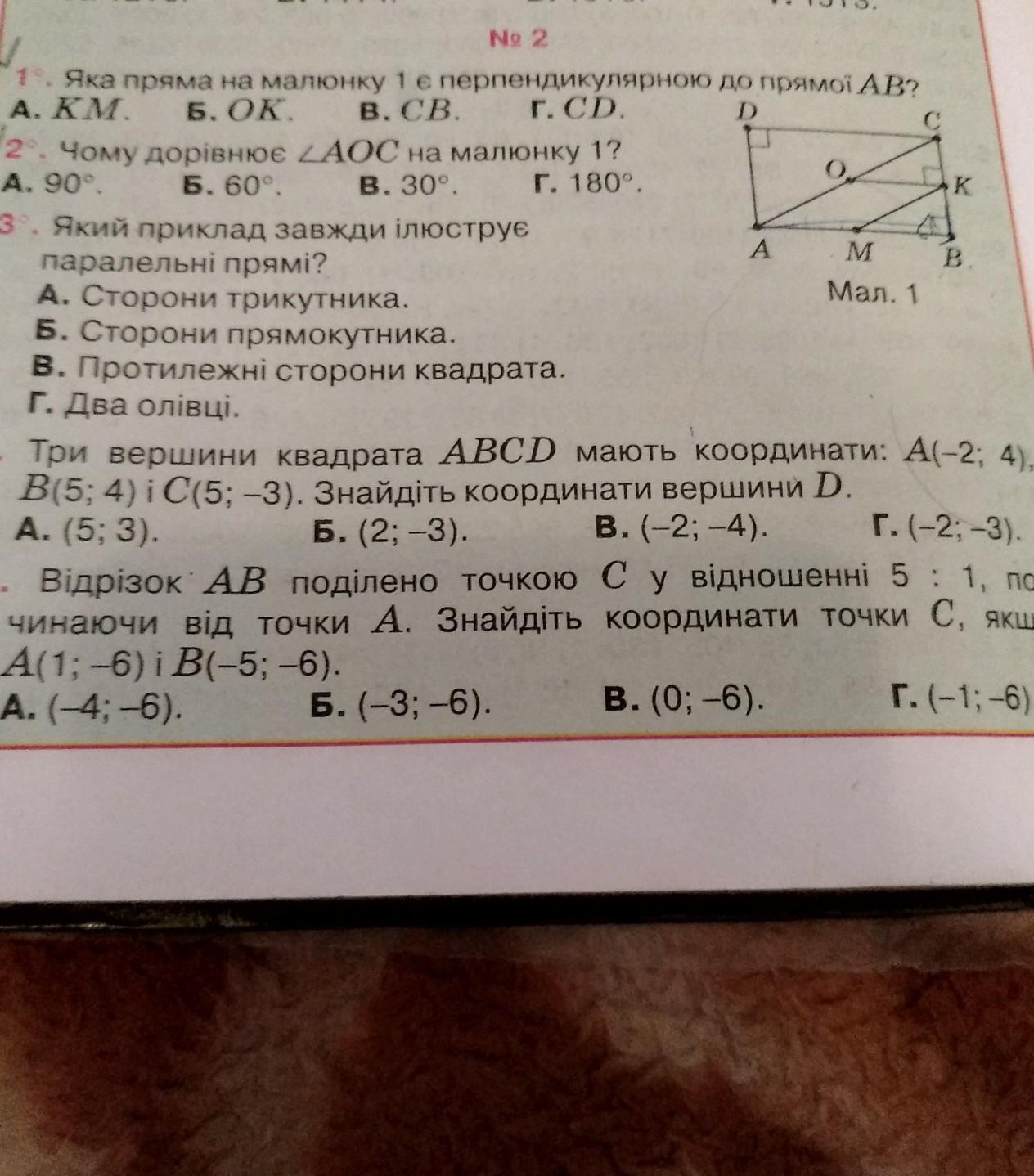 4)Проведемо діагоналі АС і ВД , О-точка перетину. За властивістю діагоналей квадрата АВСД АО=ОС ВО=ОД. Розглянемо пряму(діагональ) АС : х=-2+5/2=1,5 у=-3+4/2=0,5 . Точка О(1,5;0,5) . Розглянемо пряму(діагональ) ВД : х=2•1,5-5=-2 у=2•0,5-4=-3. Точка Д(-2;-3) . Якщо намалювати цей квадрат на координатній прямій х і у , то точки збігаються . Отже , відповідь : Г(-2:-3).