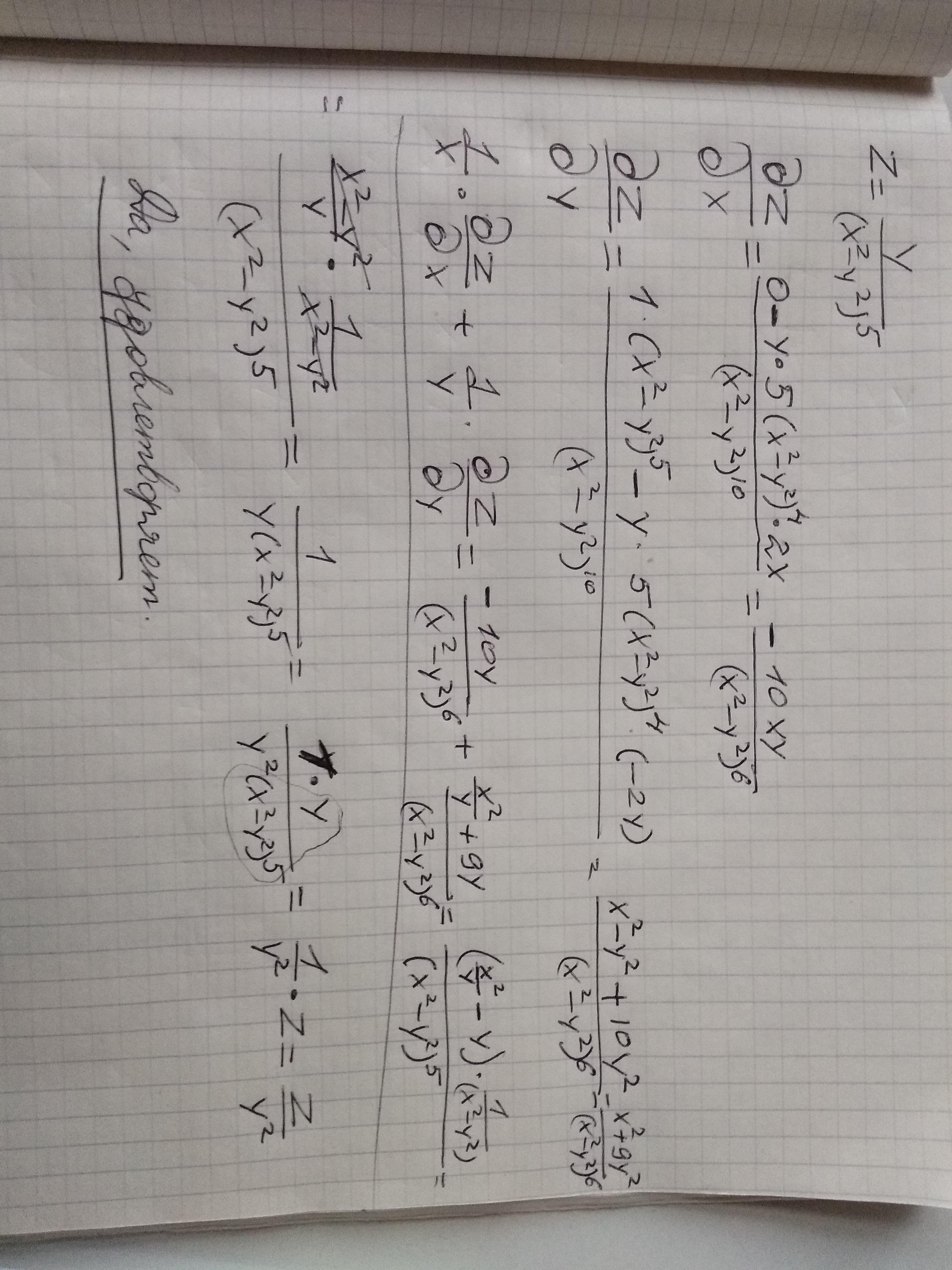 Дана функция z=f(x,y). Проверить, удовлетворяет или нет эта функция данному уравнению. (на листочке, подробно пожалуйста)