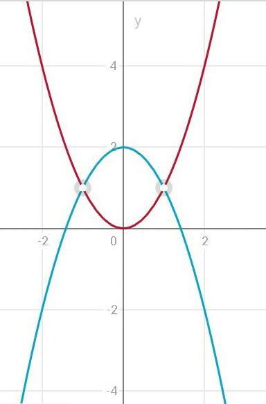 F x²-(-x²+2) dx = F 2x²-2 dx = 2x³/3 - 2x |от -1 до 1| = 8/3 = 2⅔
