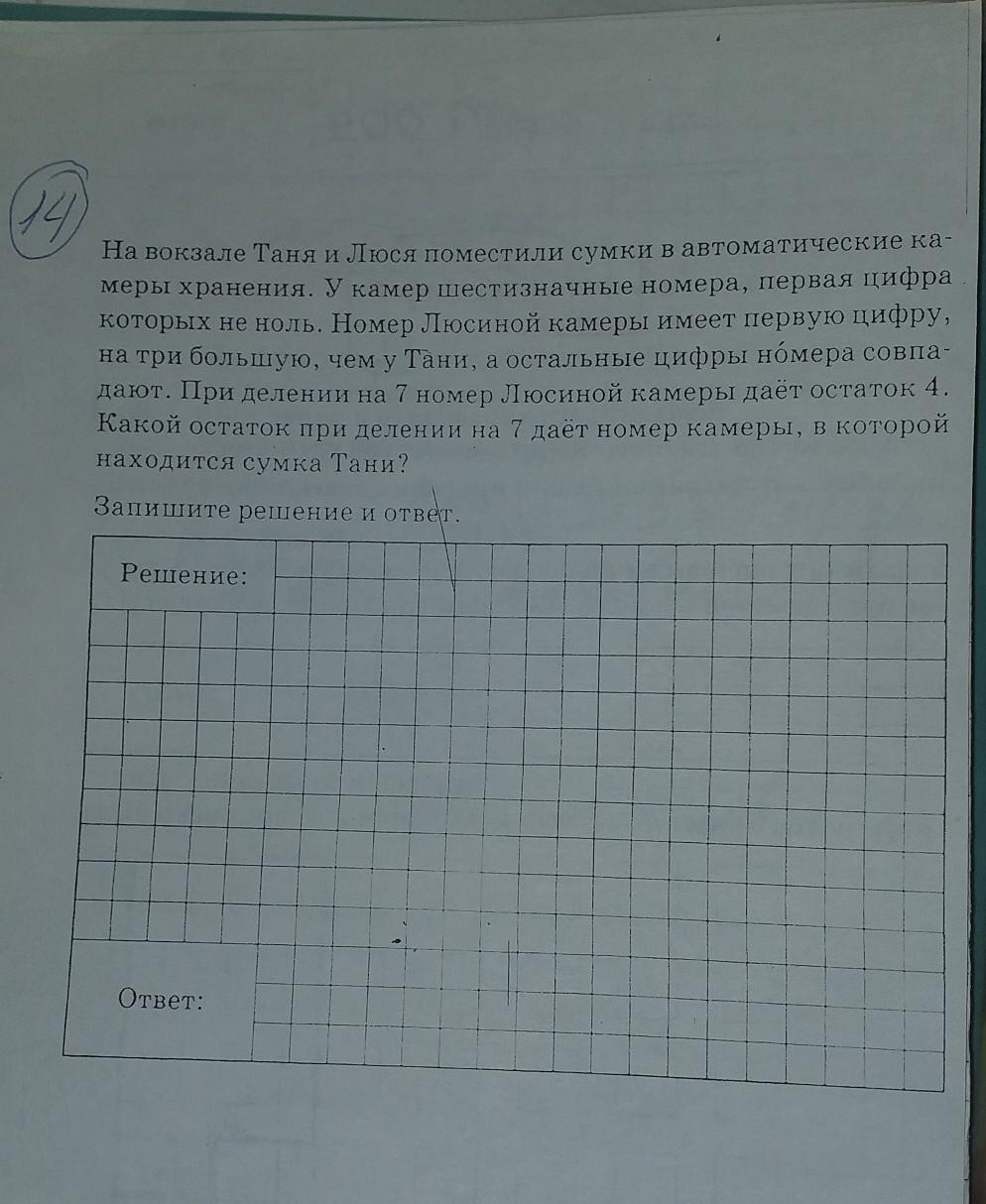 Следовательно у Тани номер камеры 156789, разделив его на 7 получим число 22398 с остатком 3