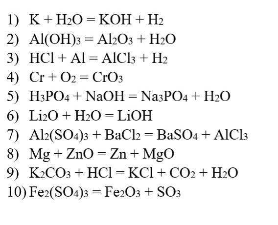 7) Al2(SO4)3 + 3BaCl2 + = 3BaSO4 + 2AlCl3