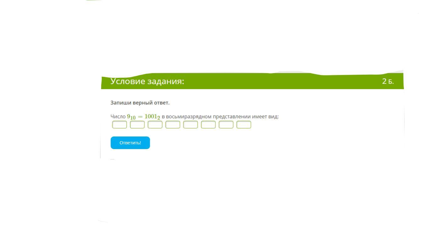 Дополним в двоичной двумя нулями: 001 001 (2) = 11 (8).