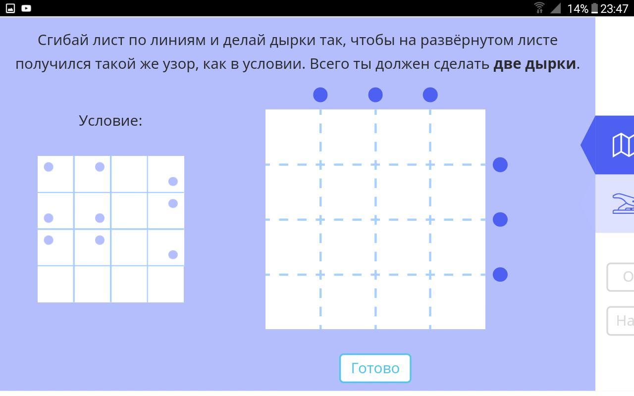 1 - сначала верхний ряд согни вниз, 2- два нижних ряда согни вверх, 3 -один левый ряд согни вправо, 4- сделай 2 дырки, как в клетках 6 и 8