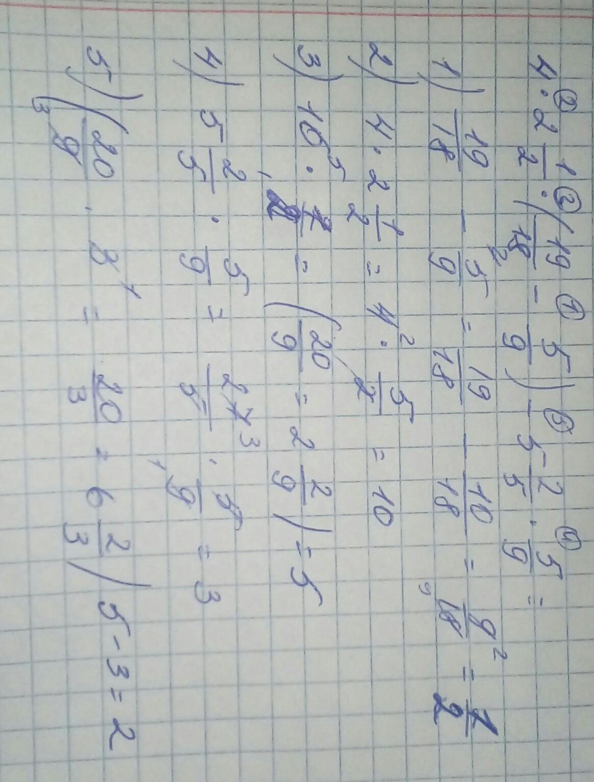 1) 19/18 - 5/9 = 19/18 - 10/18 = 9/18 = 1/2