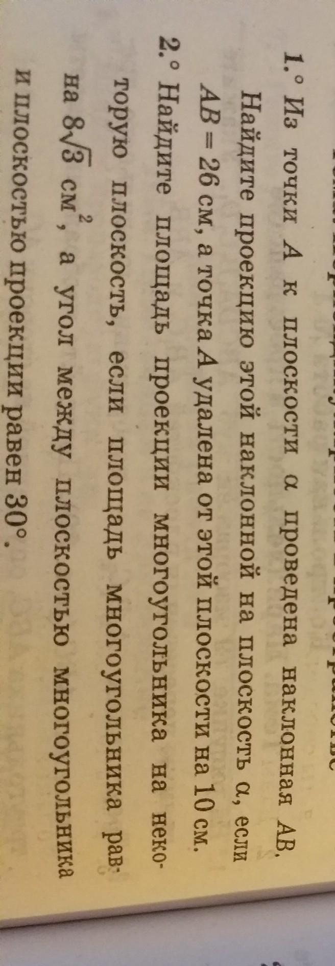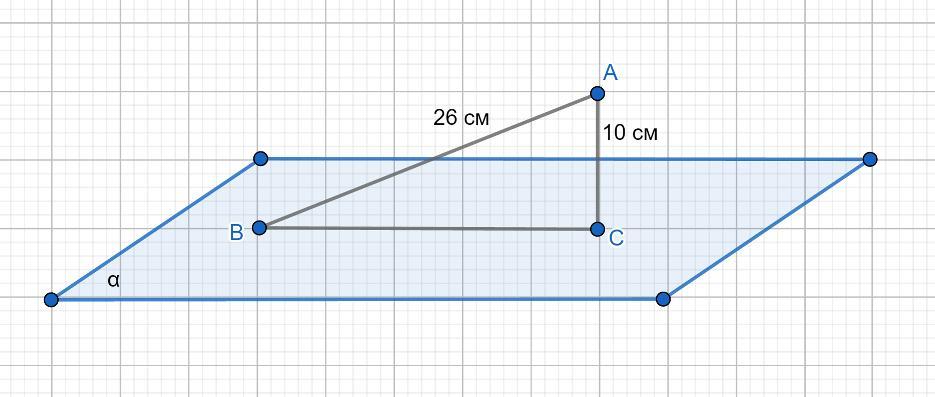 1) Проекцией прямой АВ на плоскость α является отрезок ВС.