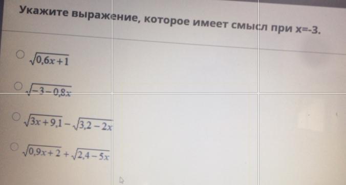 ОДЗ=(-3 1/30;∞)∩(-∞;1,6)⇒√(3х+9,1)-√(3,2-2х)при х=-3 выражение имеет смысл