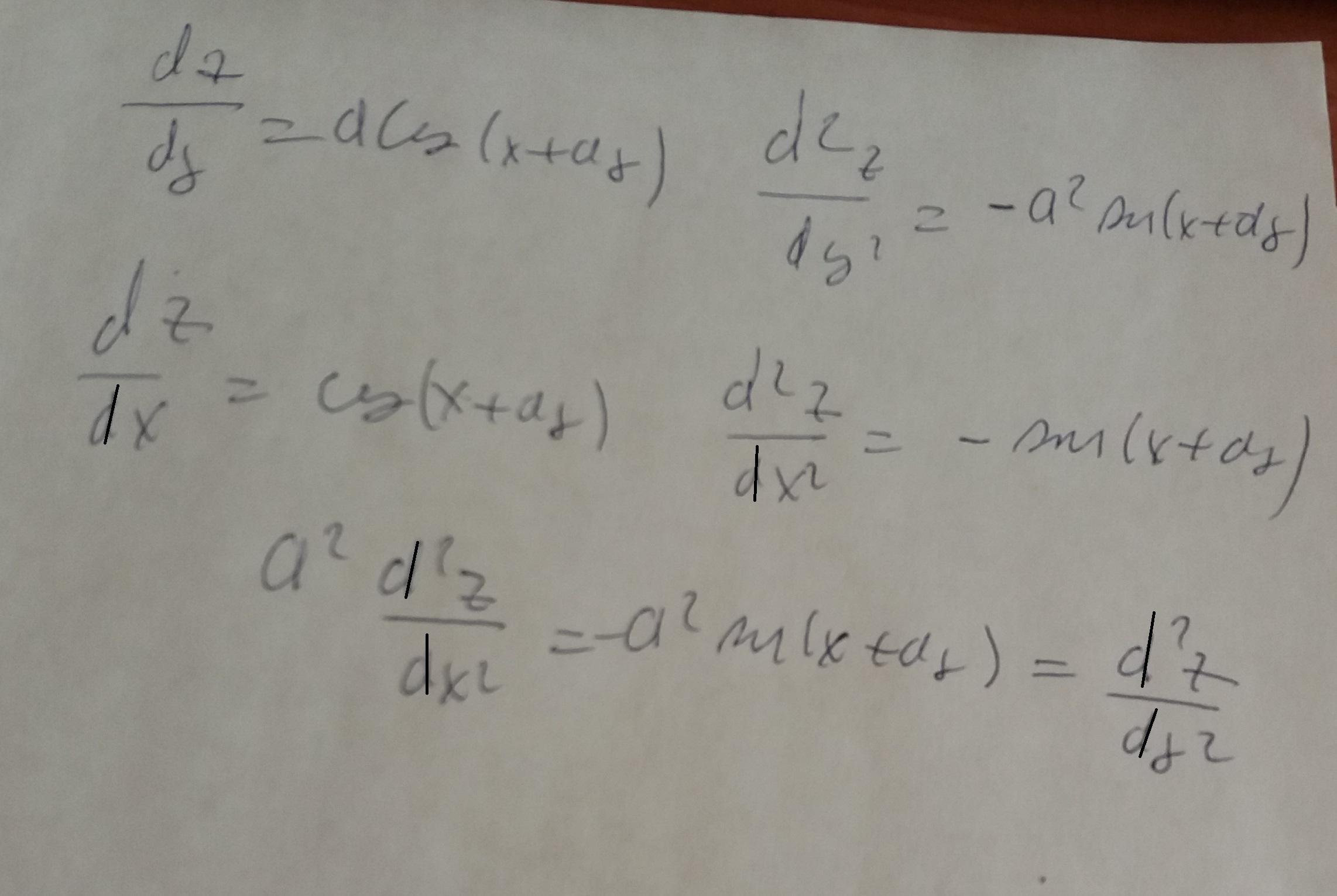 a²*d²z/dx²=-a²sin(x+ay)=d²z/dy²